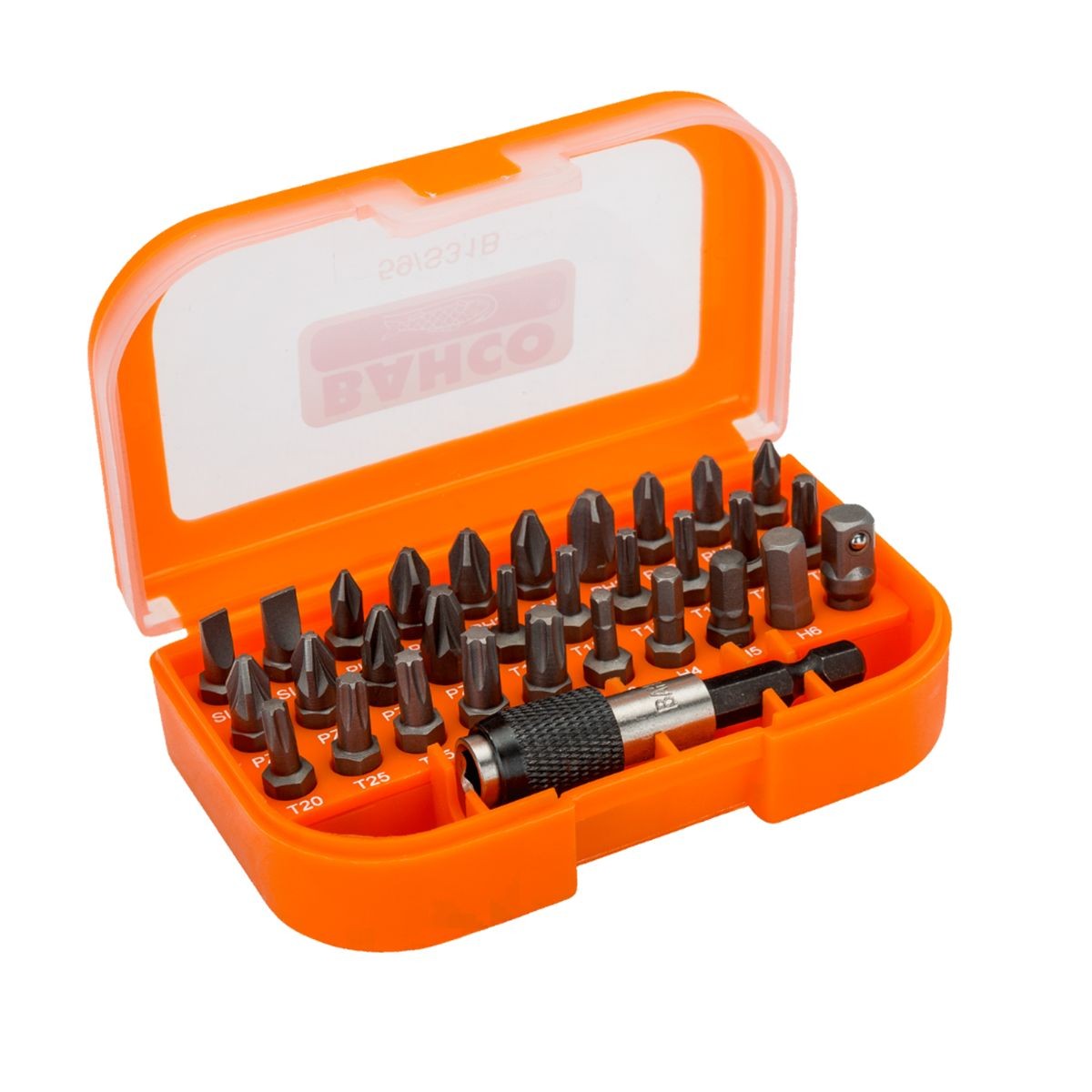 Το Bahco S31B είναι ένα πλήρες σετ bits 1/4" για διάφορες βίδες (επίπεδες, Phillips, Pozidriv, TORX, HEX). Περιλαμβάνει επίσης μαγνητικό bit holder και αντάπτορα σε καρυδάκι, όλα σε συμπαγή πλαστική θήκη με κλιπ ζώνης.