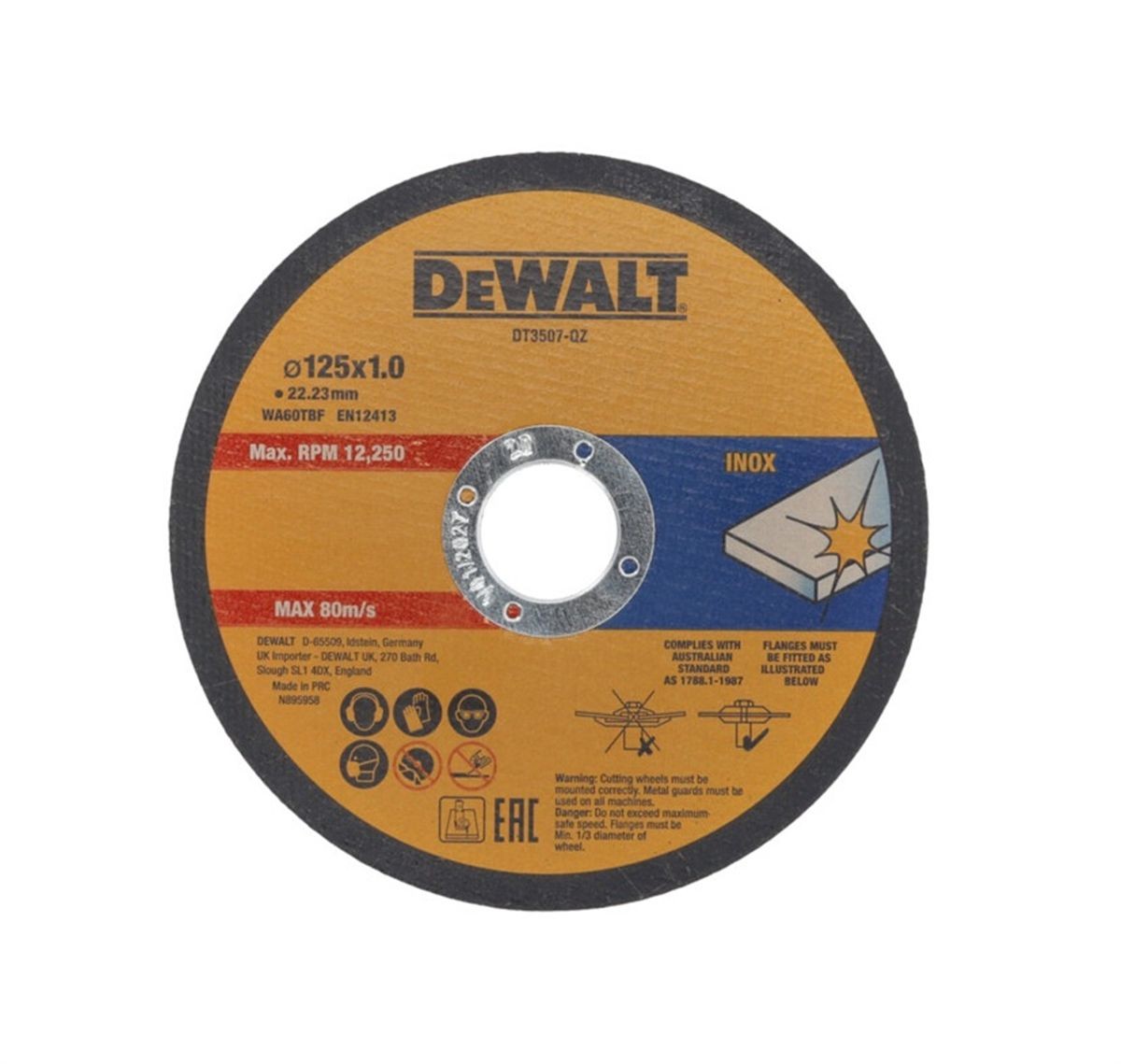 Dewalt Δίσκος Κοπής Inox Φ125 x 1,0mm – DT3507-QZ