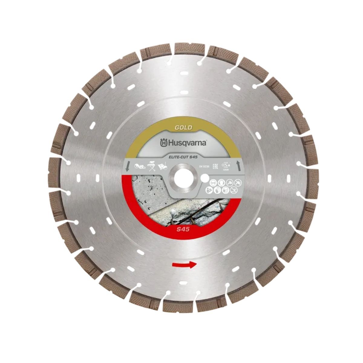 Ο διαμαντόδισκος Elite-Cut S45 Exo-Grit, μέρος της κορυφαίας σειράς Gold της Husqvarna, είναι ειδικά σχεδιασμένος για την απαιτητική κοπή οπλισμένου σκυροδέματος. Διαθέτει την πρωτοποριακή τεχνολογία Exo-Grit με συνδυασμό δύο τύπων τμημάτων: το τμήμα Z-Edge για ομαλή εκκίνηση και το Flat Exo-Grit για μείωση της τριβής. Ο σχεδιασμός αυτός επιτρέπει έως και 20% ταχύτερη κοπή και 10% μεγαλύτερη διάρκεια ζωής, προσφέροντας παράλληλα χαμηλότερους κραδασμούς και βελτιωμένη εκκένωση υγρών αποβλήτων.