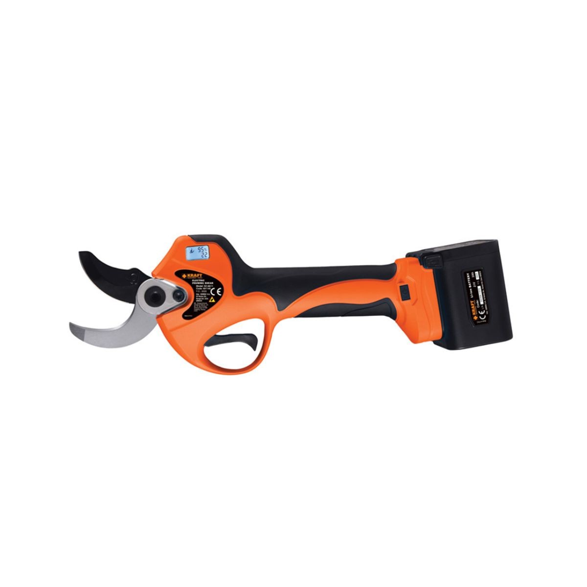 Επαγγελματικό ψαλίδι κλαδέματος μπαταρίας με ισχυρό επαγωγικό (Brushless) κινητήρα μέγιστης ισχύος 1050W. Διαθέτει λεπίδες από ατσάλι SK5 με επικάλυψη Teflon στην άνω λεπίδα για μείωση των τριβών και προστασία του μοτέρ. Είναι εξοπλισμένο με ψηφιακή οθόνη ενδείξεων για τον έλεγχο του ποσοστού μπαταρίας και του αριθμού κοπών (τρέχουσες και σύνολο). Το σετ προσφέρει μεγάλη αυτονομία και ευελιξία χάρη στον συνδυασμό δύο μπαταριών διαφορετικής χωρητικότητας (2Ah και 4Ah).