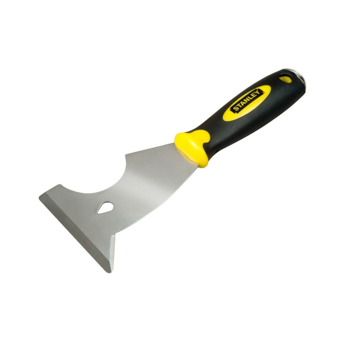 Η Stanley 0-28-206 είναι μια ανθεκτική και πρακτική σπάτουλα τύπου «6-σε-1», ιδανική για βαφές, καθαρισμούς και γενικές επισκευές. Διαθέτει λεπίδα από σκληρυμένο ατσάλι για αποξήλωση χρωμάτων ή υπολειμμάτων, άκρη για καθαρισμό ρολλού βαφής, άνοιγμα για εξαγωγή καρφιών και ενισχυμένο πίσω μέρος για χρήση ως σφυρί. Η εργονομική λαβή δύο υλικών προσφέρει άνετο και σταθερό κράτημα.