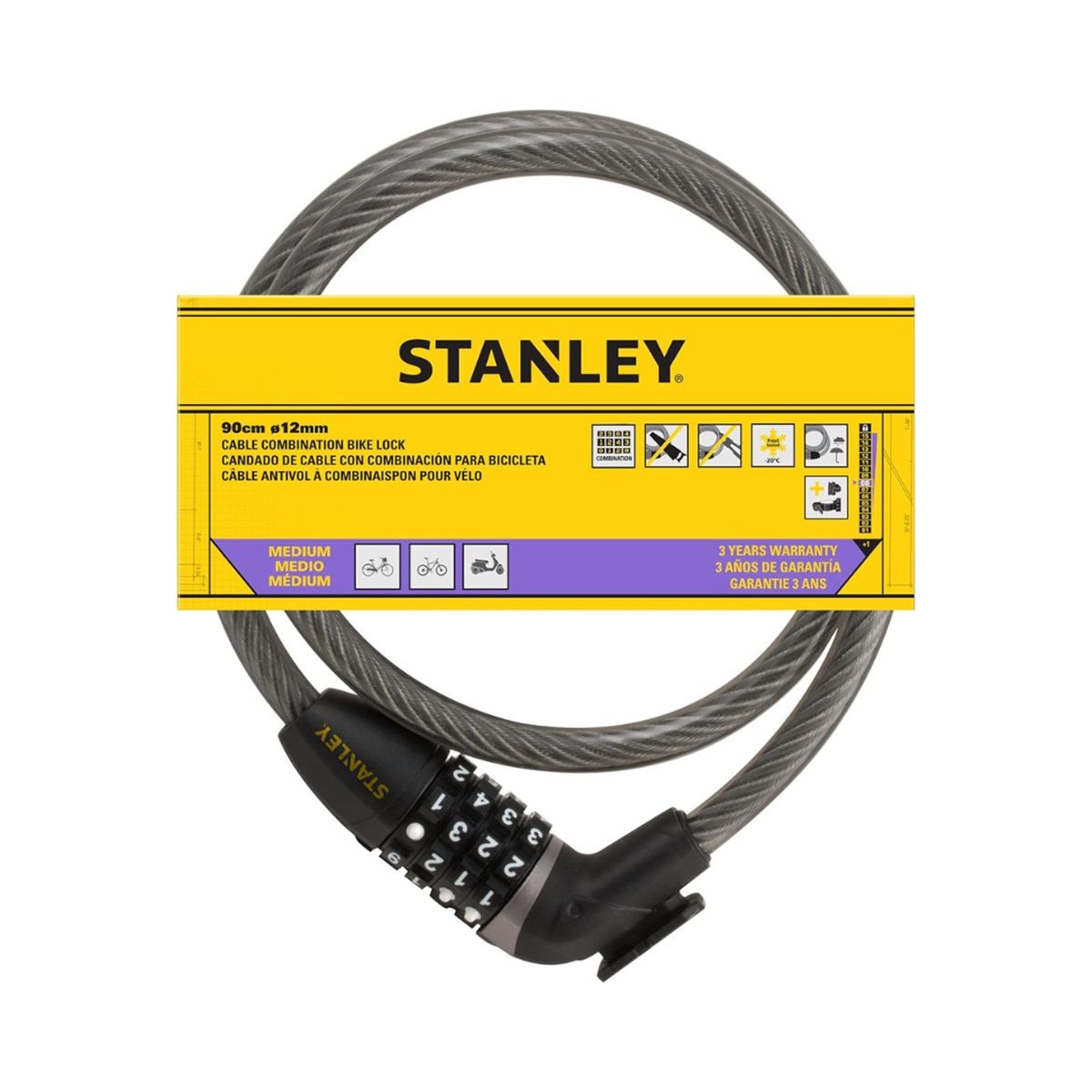Stanley Αντικλεπτικό Συρματόσχοινο Ποδηλάτου με Συνδυασμό 4 Ψηφίων 12x90cm – S755-205