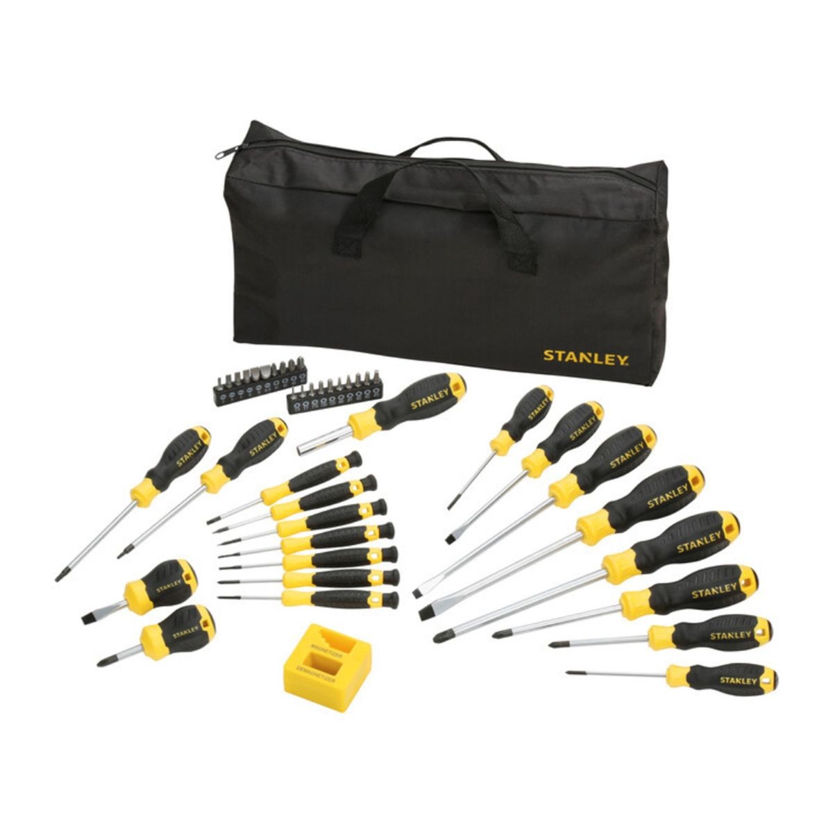 Το Stanley STHT0-62113 είναι ένα πλήρες σετ 42 τεμαχίων κατσαβιδιών και bits, σχεδιασμένο για επαγγελματική ή εντατική χρήση. Περιλαμβάνει ποικιλία κατσαβιδιών επίπεδας, Phillips και Torx, καθώς και bits και μαγνητικό εργαλείο για μεγαλύτερη ευελιξία στη χρήση. Η θήκη μεταφοράς εξασφαλίζει οργανωμένη αποθήκευση και εύκολη πρόσβαση σε όλα τα εργαλεία.