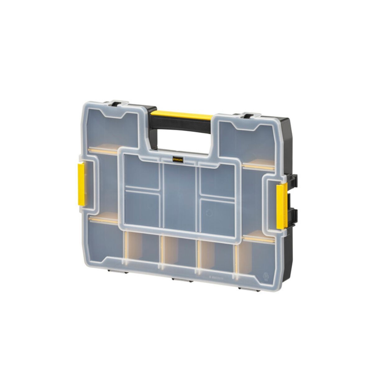 Η Stanley Sortmaster 1-97-483 είναι μικρή αλλά εξαιρετικά πρακτική ταμπακιέρα-οργανωτής με 14 αποθηκευτικές θέσεις, σχεδιασμένη για εύκολη και ευέλικτη οργάνωση μικροανταλλακτικών, εργαλείων χειρός ή εξαρτημάτων. Διαθέτει καπάκι που ασφαλίζει το περιεχόμενο, δυνατότητα στοίβαξης έως τριών μονάδων ταυτόχρονα και διαρρύθμιση έως 512 διαφορετικών τρόπων για προσαρμογή στις ανάγκες σας.