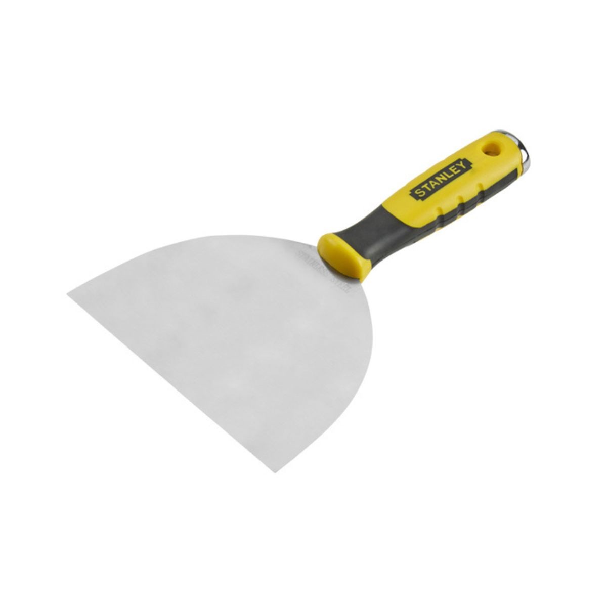 Η Stanley STHT0-05864 είναι μια αξιόπιστη σπάτουλα γυψοσανίδας με λεπίδα από ανοξείδωτο ατσάλι (INOX) και πλάτος περίπου 150 mm, σχεδιασμένη για επαγγελματικές εργασίες εξομάλυνσης ενώσεων και εφαρμογής στόκου. Η λεπίδα στενεύει από τη λαβή προς την άκρη για ομαλή εφαρμογή και μειωμένες γραμμές, ενώ η εργονομική λαβή εξασφαλίζει σταθερό και άνετο κράτημα. Ιδανική επιλογή για τεχνίτες γυψοσανίδας που χρειάζονται ανθεκτικό εργαλείο φινιρίσματος με καθαρό αποτέλεσμα.