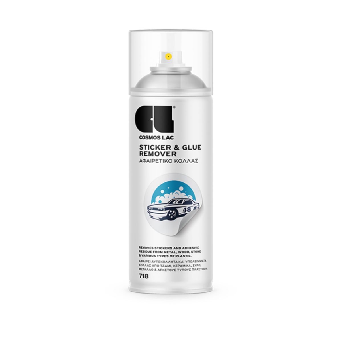 Πριν τη χρήση, ελέγξτε τη συμβατότητα της επιφάνειας σε μη εμφανές σημείο. Τοποθετήστε όσο μπορείτε το αυτοκόλλητο χειροκίνητα. Ανακινήστε καλά το δοχείο και ψεκάστε πάνω στο αυτοκόλλητο ή τα υπολείμματα κόλλας. Μετά από 4-5 λεπτά, τρίψτε με πανί ή σπάτουλα. Κατάλληλο για γυαλί, κεραμικά, ξύλο, μέταλλο και διάφορους τύπους πλαστικών.