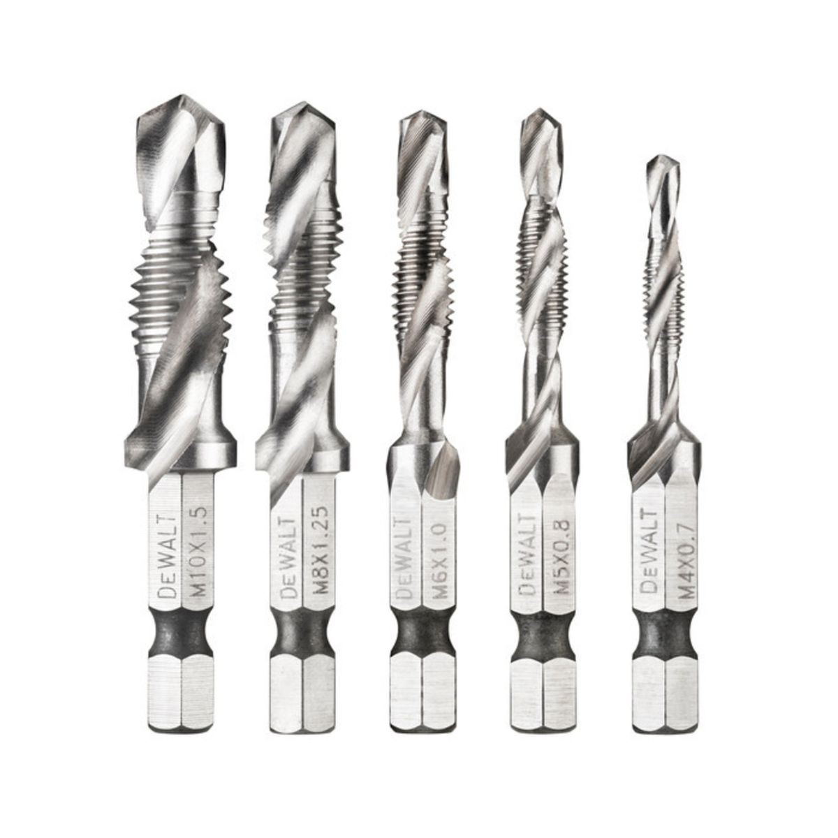 • Τύπος: Σετ τρυπανιών–κολαούζο τιτανίου • Μοντέλο: DT50060-QZ • Ποσότητα: 5 τεμάχια • Μεγέθη: M4, M5, M6, M8, M10 • Στέλεχος: 1/4'' Hex • Υλικό: Χάλυβας με επικάλυψη τιτανίου • Ιδανικό για: διάτρηση και κοπή σπειρώματος σε λεπτό μέταλλο