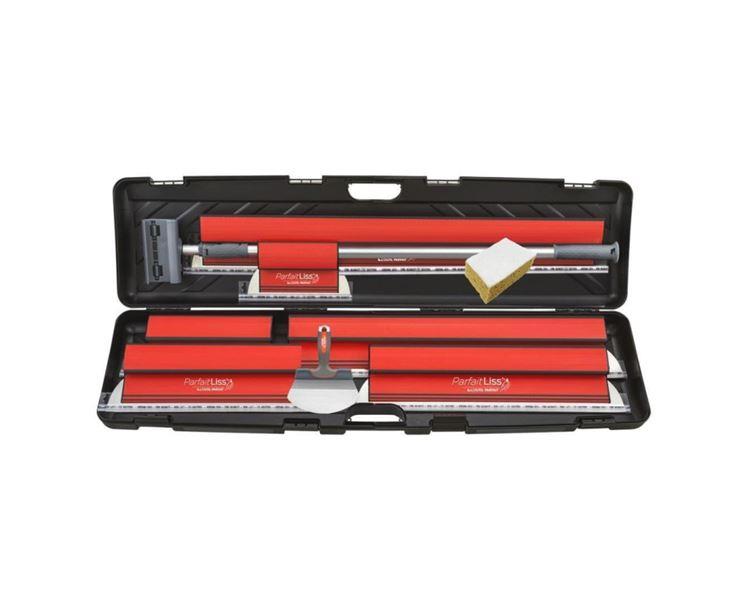 Αυτό το σετ Parfaitliss 80636 περιλαμβάνει όλα τα απαραίτητα για επαγγελματικό φινίρισμα σε γυψοσανίδα. Κάθε σπάτουλα διαθέτει λεπίδα από ανοξείδωτο ατσάλι 0,5 mm με στρογγυλεμένες άκρες για ομαλή εφαρμογή και πλαστική-καουτσούκ λαβή που προσφέρει άνετο κράτημα. Το πτυσσόμενο κοντάρι με ACME βίδα και μεταλλικό σωλήνα επιτρέπει επέκταση έως 100 cm, ενώ ο σύνδεσμος και το σφουγγάρι διευκολύνουν τον καθαρισμό και τη μετάβαση μεταξύ εργαλείων. Όλα αποθηκεύονται σε ανθεκτική βαλιτσάκι διαστάσεων 105?30?11,3 cm