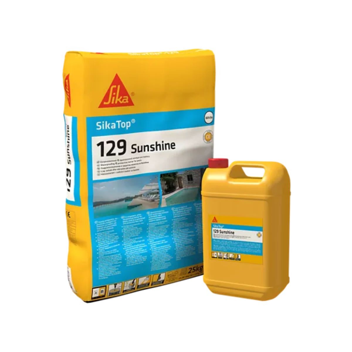 Το SikaTop-129 Sunshine είναι σύστημα 2 συστατικών τσιμεντοειδούς στεγανοποίησης και επικάλυψης. Το Συστατικό B αποτελεί τη στεγανωτική σκόνη που αναμειγνύεται με το Συστατικό A (υγρό πολυμερές), δημιουργώντας ένα ελαστικοποιημένο, υδατοστεγές κονίαμα υψηλής πρόσφυσης. Το σύστημα προσφέρει αξιόπιστη προστασία έναντι υγρασίας, υδροστατικής πίεσης και καταπονήσεων, κατάλληλο για πισίνες, δεξαμενές, υπόγεια και επιφάνειες σκυροδέματος.