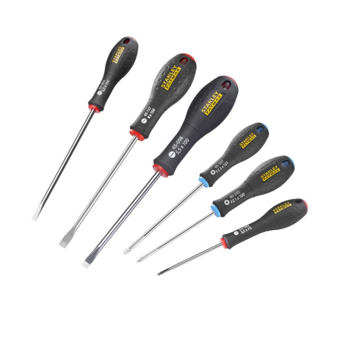 Τεχνικά Χαρακτηριστικά: • Σετ 6 τεμαχίων κατσαβιδιών • Μύτες (τύποι & διαστάσεις): – SL (επίπεδες): 3,5 × 75 mm, 5,5 × 150 mm – Standard (επίπεδη): 5,5 × 100 mm, 8 × 150 mm – Pozidriv (PZ): PZ1 × 100 mm, PZ2 × 125 mm • Λεπίδες από χρωμιο-βαναδίου (chrome-vanadium steel) • Εργονομικές διχρωμικές λαβές, αντιολισθητικές, με μεγάλο διάμετρο για καλύτερο χειρισμό και ροπή • Χρωματισμένες άκρες λαβής για άμεση αναγνώριση τύπου κατσαβιδιού