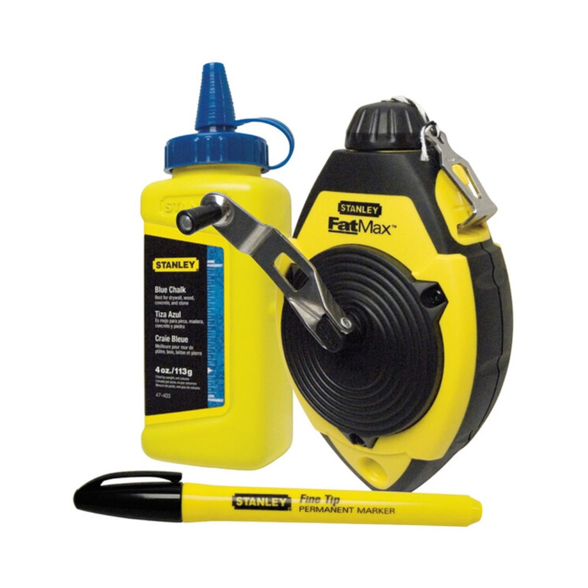 Περιλαμβάνει: 1 καρούλι νήματος χάραξης 30m 1 μπουκάλι μπλε κιμωλίας 1 μαρκαδόρο Stanley FATMAX