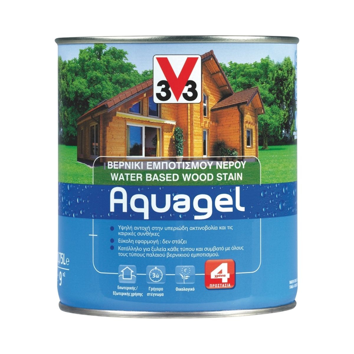 V33 Aquagel Woodstain Βερνίκι Εμποτισμού Νερού Δρυς Ανοιχτή Σατινέ 750ml 9089